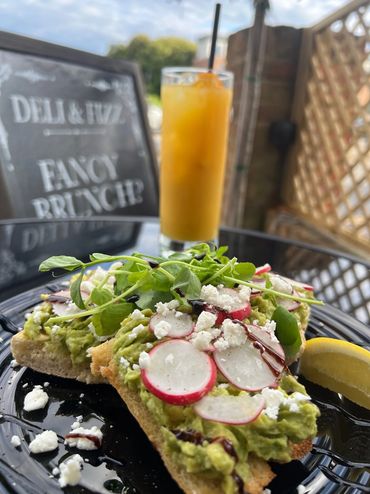 Smashed Avocado on toasted ciabatta with crumbed feta and sliced radish