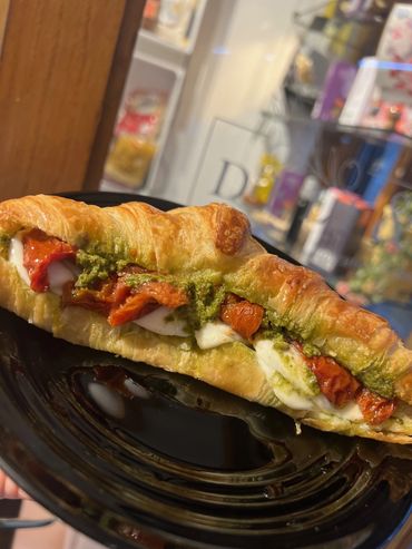 Mozzarella, sun blushed tomatoes and basil pesto croissant
